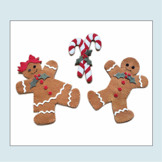 Gingerbread & Candy Canes Wool Applique Christmas Ornament Kit